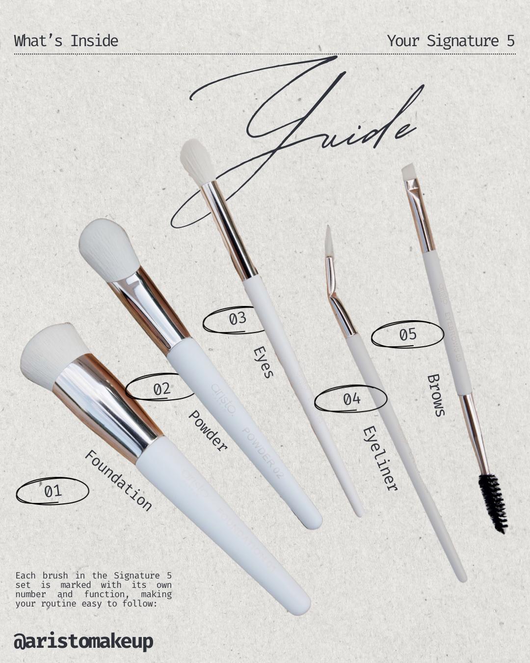 The Aristo Signature 5 Kit transforms your routine into a moment of clarity, not chaos. Each brush is shaped for real faces and real life: soft textures, precise edges, and multi-purpose design. A few minutes with these brushes is your time to pause, breathe, and reconnect with yourself.